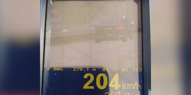 Um veículo foi registrado pela Polícia Rodoviária Federal (PRF) trafegando a 204 km/h na Rodovia do Contorno, em Serra, Região