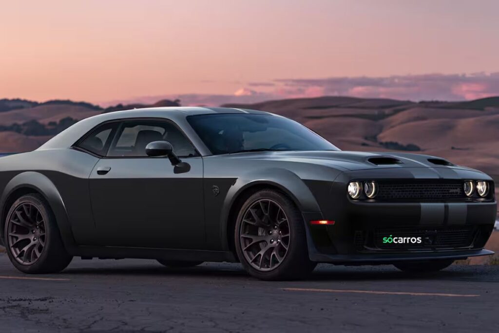 O Dodge Challenger Hellcat 2023 é uma verdadeira obra-prima da engenharia automotiva, combinando potência bruta com um design icônico. Este