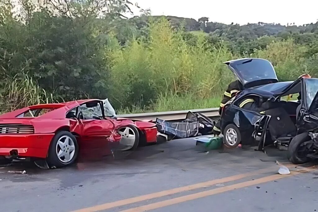 Um grave acidente envolvendo um carro de luxo chamou a atenção no interior de São Paulo. Uma Ferrari vermelha, modelo